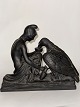 Figur i keramik (sort basalt) forestillende Ganymedes med Jupiters ørn af Bertel Thorvaldsen (1770-1844) Formgivet i Rom 1817-18. Denne kopi fra den københavnske lervarefabrik Peter Ipsen, er fremstillet omkring 1900. Ifølge den græske mytologi bortfører Jupiters ørn Ganymedes for at for at gøre ham til gudernes mundskænk (tjener). Fabriksmærket på bunden med P. Ipsen, KJØBENHAVN ENERET samt model nummer 349. Mål: H. 19 cm. Basen måler 9 x 22,5 cm