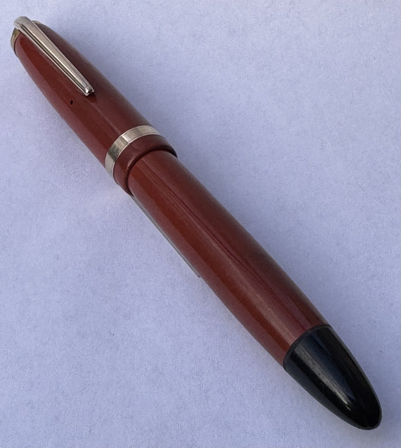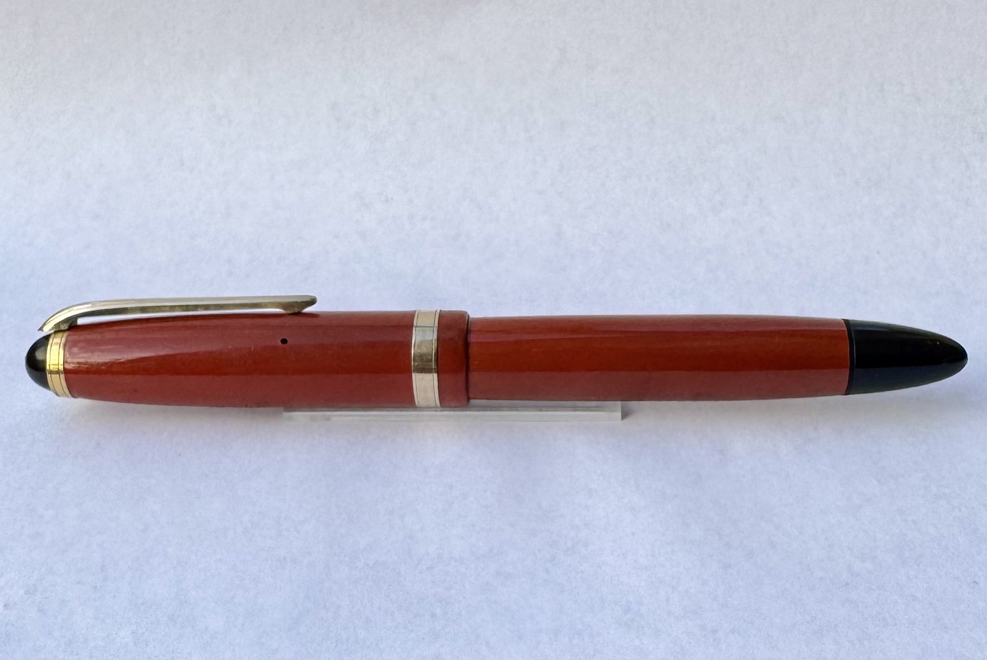Koral rød Montblanc nr. 216 fyldepen. Push button filler. Fremstillet I Tyskland i 1950’erne. Fremstår I god stand uden skader eller reparationer. Alle dele originale Montblanc fra produktionsperioden med bl.a flot nr. 6 spids i 14 karat guld. Indgraveret STENLILLE 114 på siden af pennen. L.13,8 cm