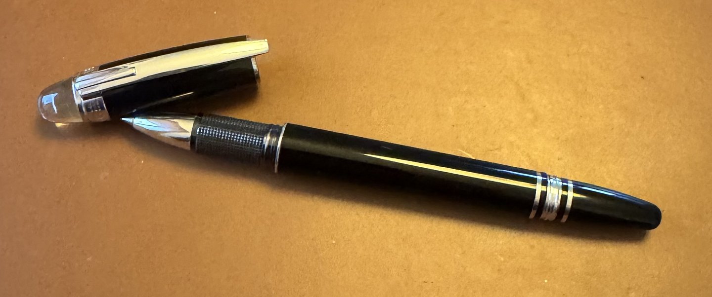 Sort Montblanc Starwalker rollerball pen. I god og skriveklar stand med ny refill. L. 14,2 cm.