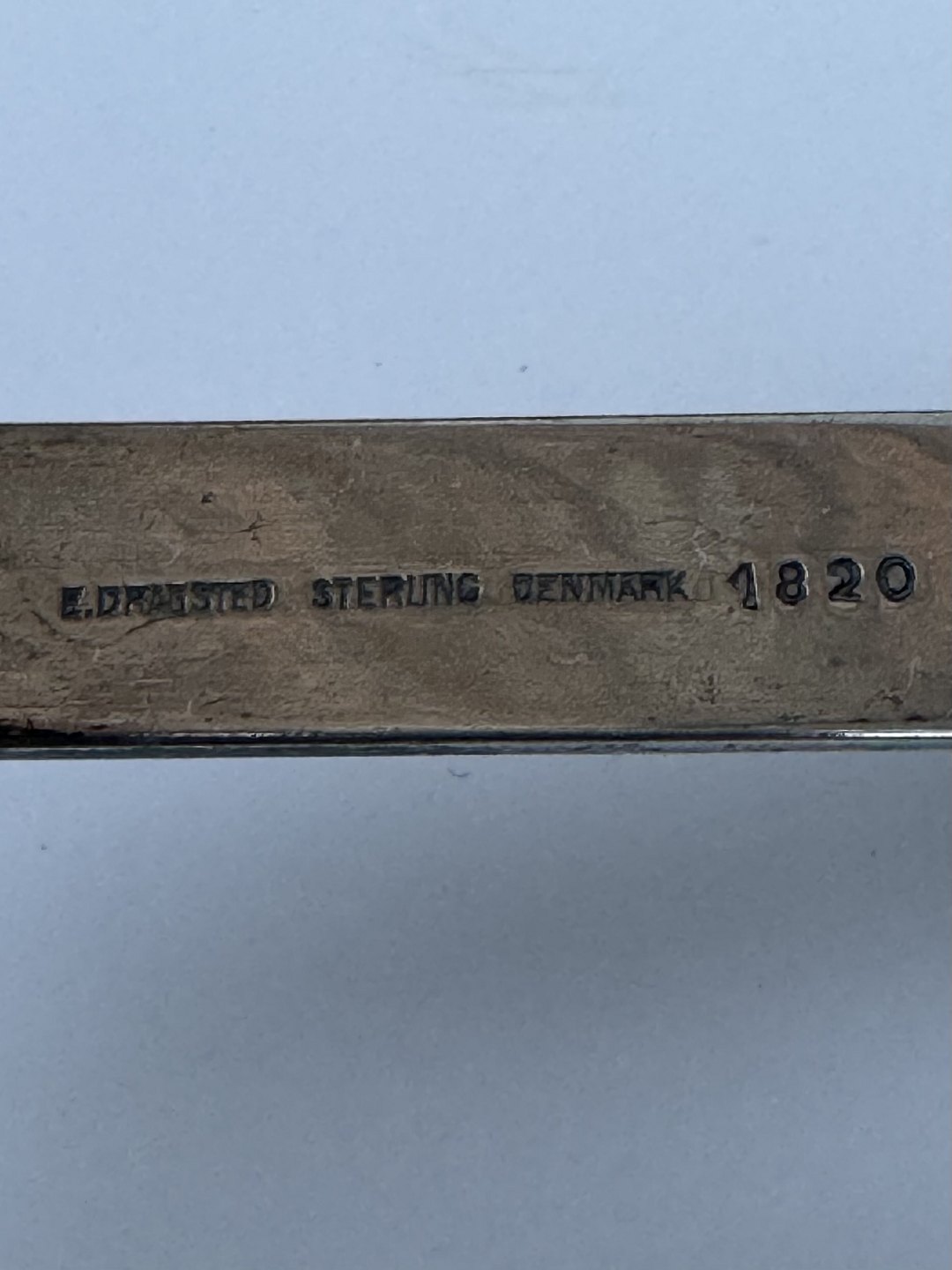 Isspand i glas fra svenske Strömbergshytten med greb i sterling sølv af E. Dragsted. I god stand.