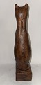 Figur af siddende kat i keramik af Emil Ruge. Dækket af brun glasur. Fremstår i god stand. Signeret af kunstneren på soklens inderside. H. 30 cm