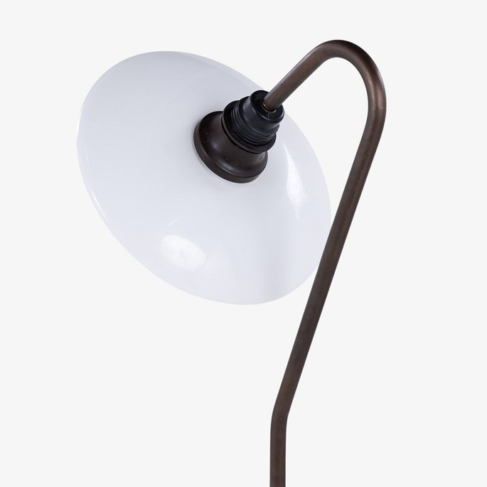 PH 3/2 - 'Syvtallet' gulvlampe med stel i bruneret messing og skærme i hvidt opalglas. Stemplet 'Patented'.