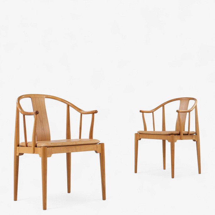 FH 4283 - Kinastol i kirsebær med hynde i patineret naturlæder. Mærket fra producent.