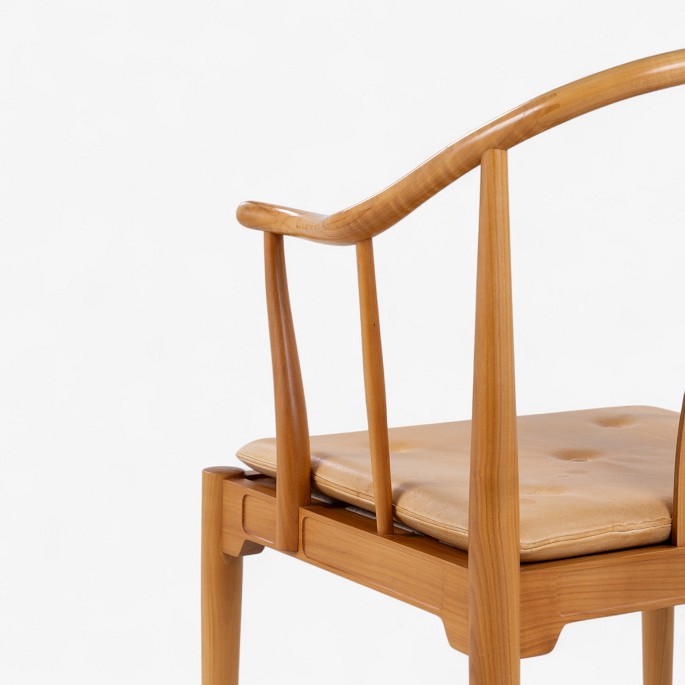 FH 4283 - Chinese chair in cherry with cushion in patinated natural leather. Manufacturer's mark.