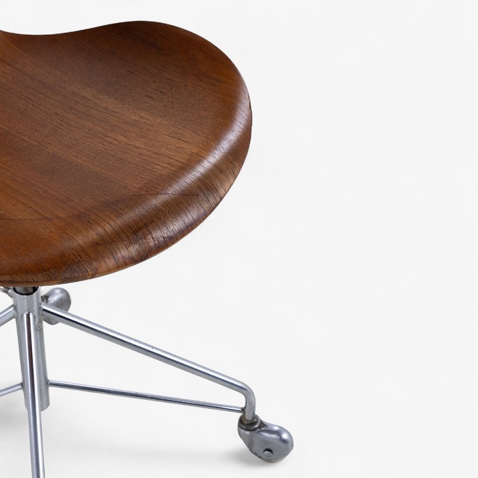 AJ 3117 - 'Syver'-kontorstol i patineret teak på gammelt stel med højdejustering. Stemplet fra producent.