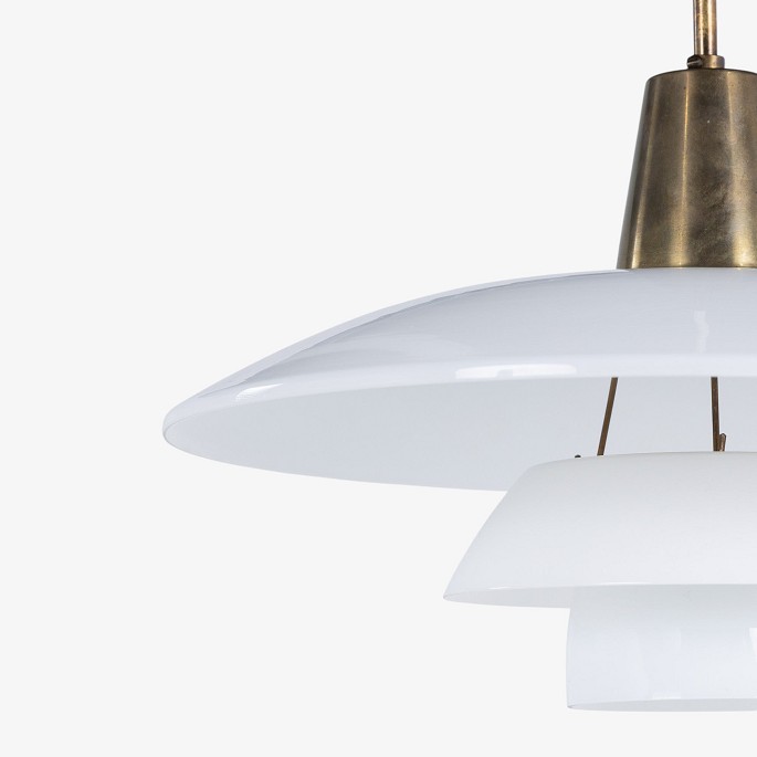 PH 4/3 - Pendel med hvide glasskærme og hejs i messing.