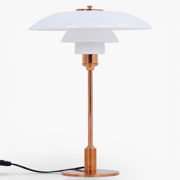PH 3½-2½ - Bordlampe med overskærm i kobber/hvidt opalglas (begge skærme medfølger) og mellem- samt underskærm i hvidt opalglas. Jubilæumsudgave. Original kasse medfølger med certifikat.