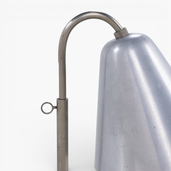 Sjælden bordlampe i forniklet metal med tragtformet skærm. Udført i 1930'erne.