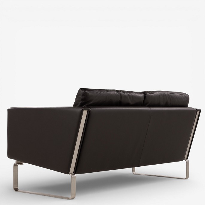 CH 102 - 2 pers. sofa i mørkebrunt, patineret semi-anilinlæder med stel i stål. Mærket fra producent.