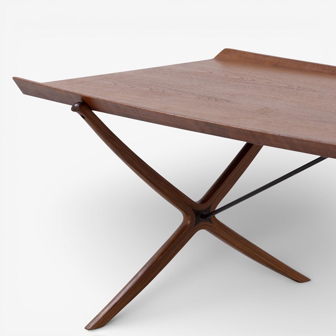 Sjældent 'X'-sofabord med top i patineret teak m. kehlet kant på krydsstel. Stemplet fra producent.