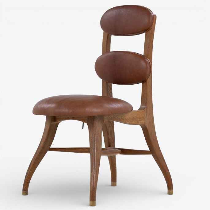 'Musikerstol' med stel i patineret egetræ og justerbart sæde og ryg i patineret nigerskind. Formgivet i 1942.
