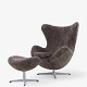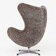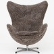 AJ 3316 - Nybetrukket 'Ægget'-lænestol med skammel i lammeskind med (Sahara 07, Curly 17mm) med helstøbt aluminiumsfod.