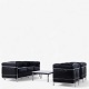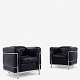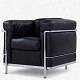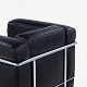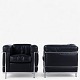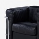 LC 2 - Lænestol i originalt sort læder med stel i stål. Stemplet fra producent.