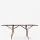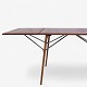Spisebord med stel i massiv egetræ og top i teak med to tillægsplader.