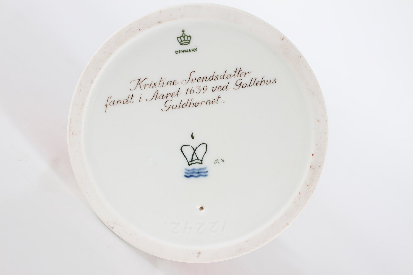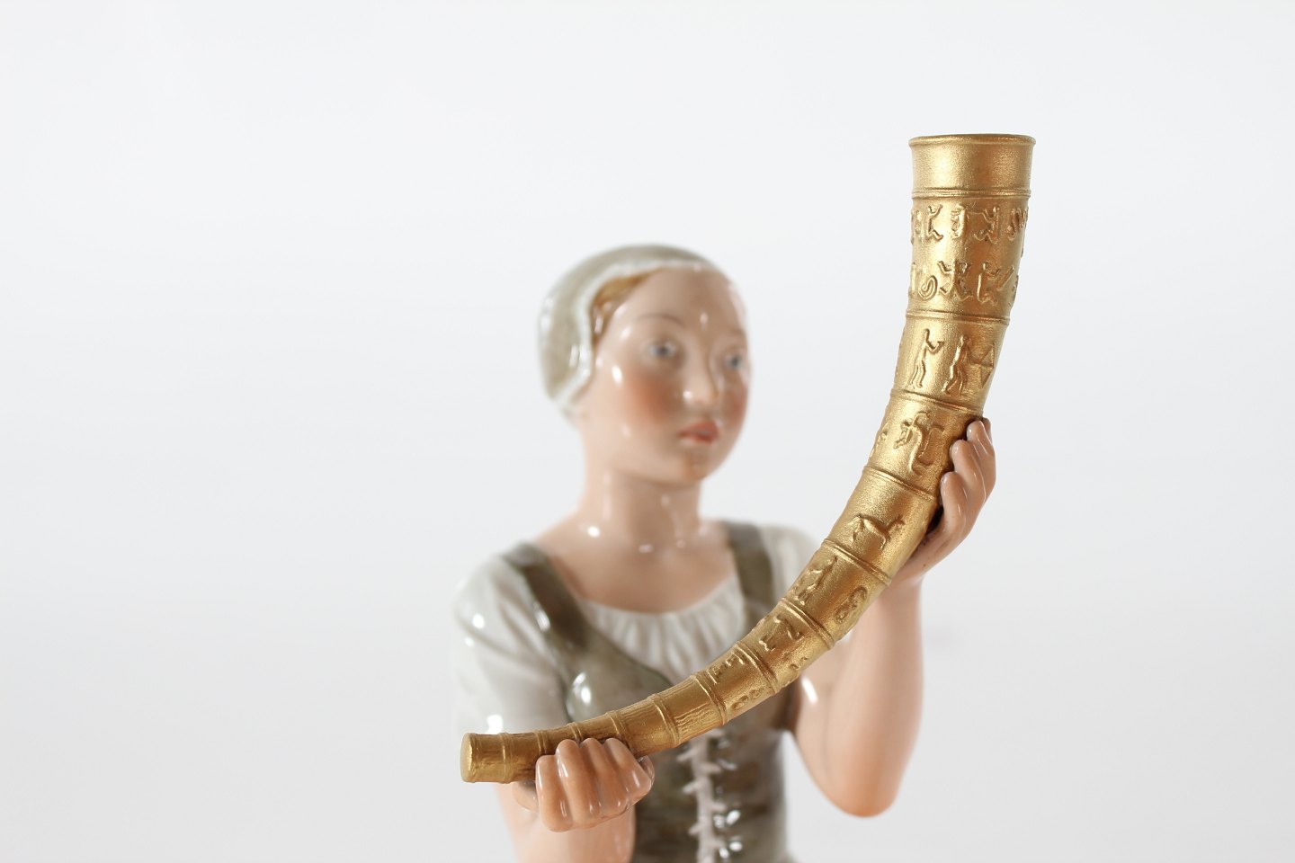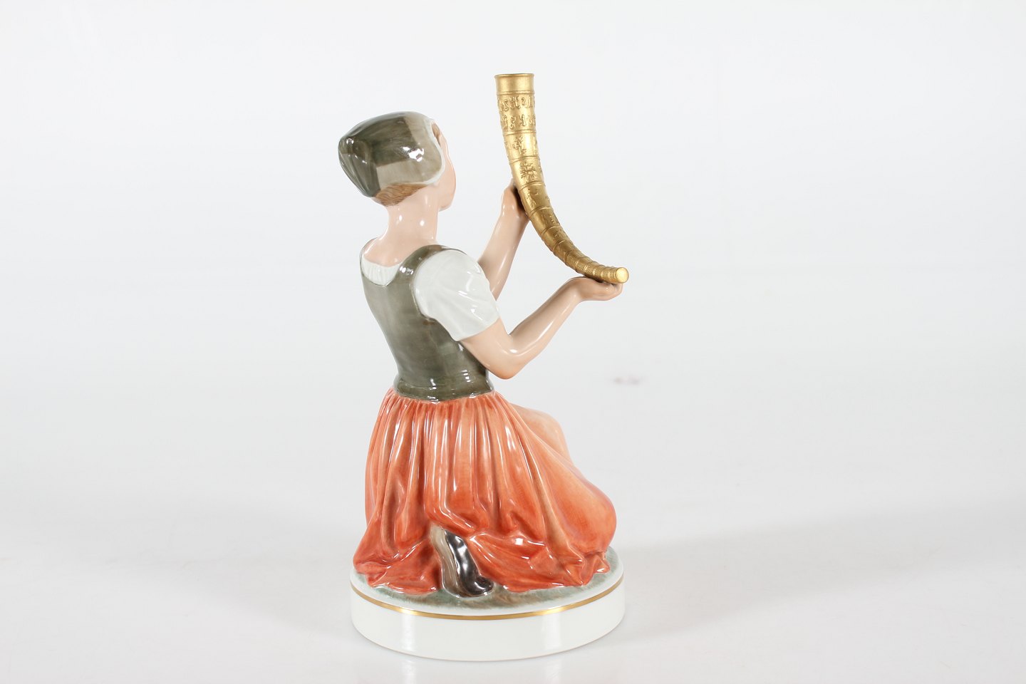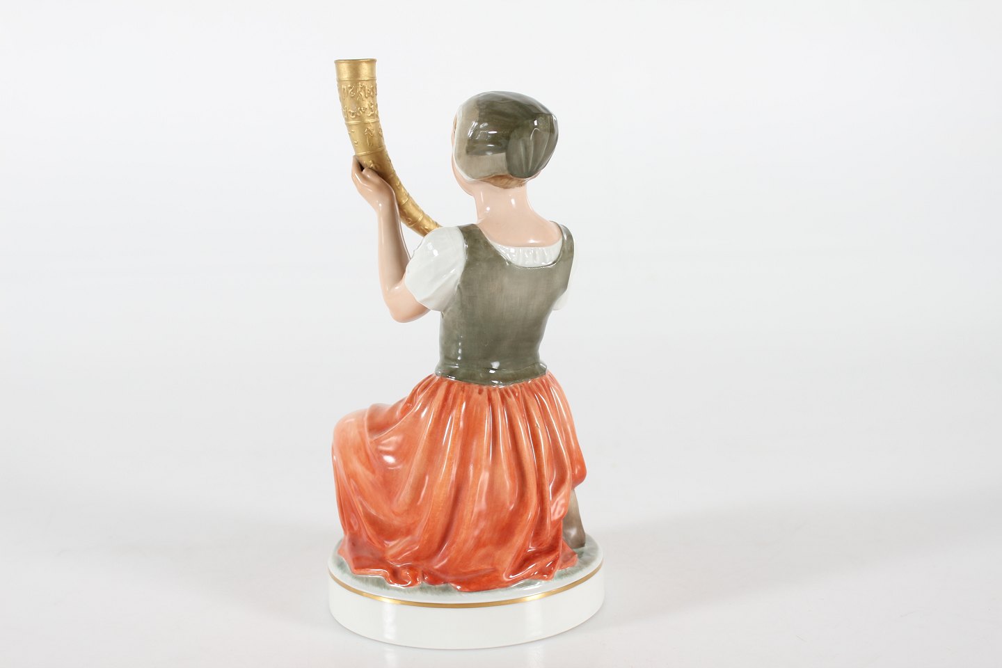 Royal Copenhagen Figurer Pigen med guldhornene model nr. 12242 efter model af Holger Christensen Højde 21,5 cm Diameter sokkel 11 cm Fin fejlfri 1. sorterting