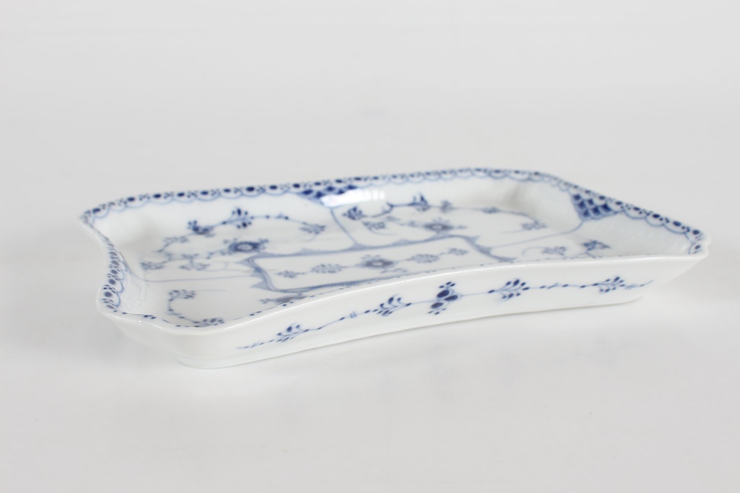 Royal Copenhagen Musselmalet Halvblonde Antik serverings- og sukker/flødebakke evt. til sushi nr. 1/716 Med stempel fra perioden 1894-1922 Længde 22 cm Bredde 15 cm Fin fejlfri 1. sortering fin