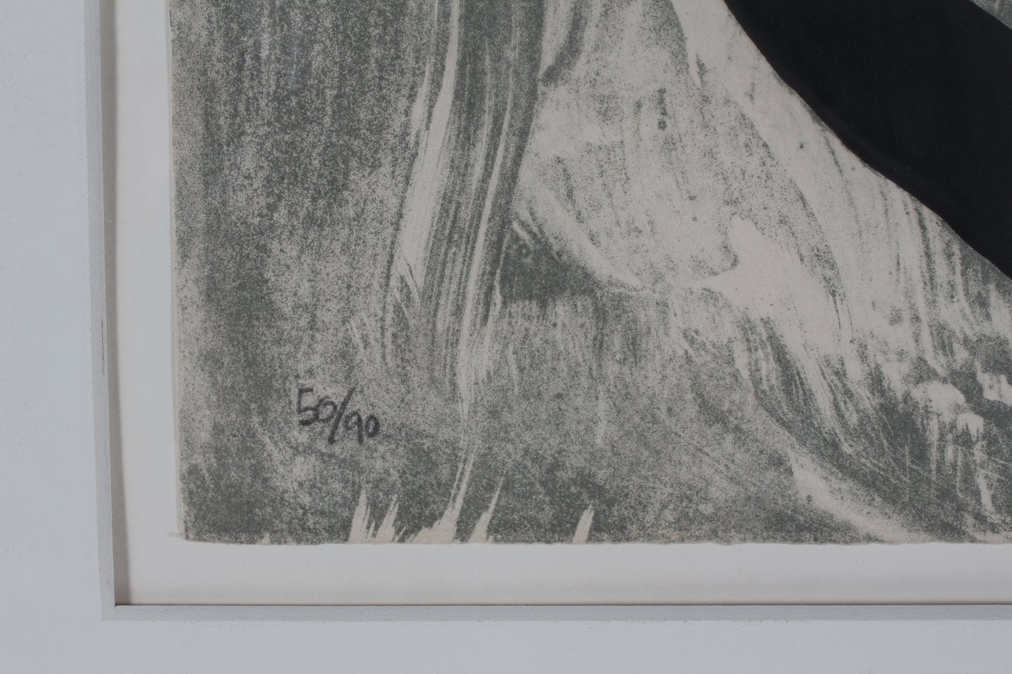 Mogens Andersen (1916-2003) Abstrakt komposition, farvelitografi 50/90 i sølvfarvet træramme Sign. MA Højde 99/76,5 cm Bredde 78/56.5 cm Fin stand Billedet kan beses efter aftale
