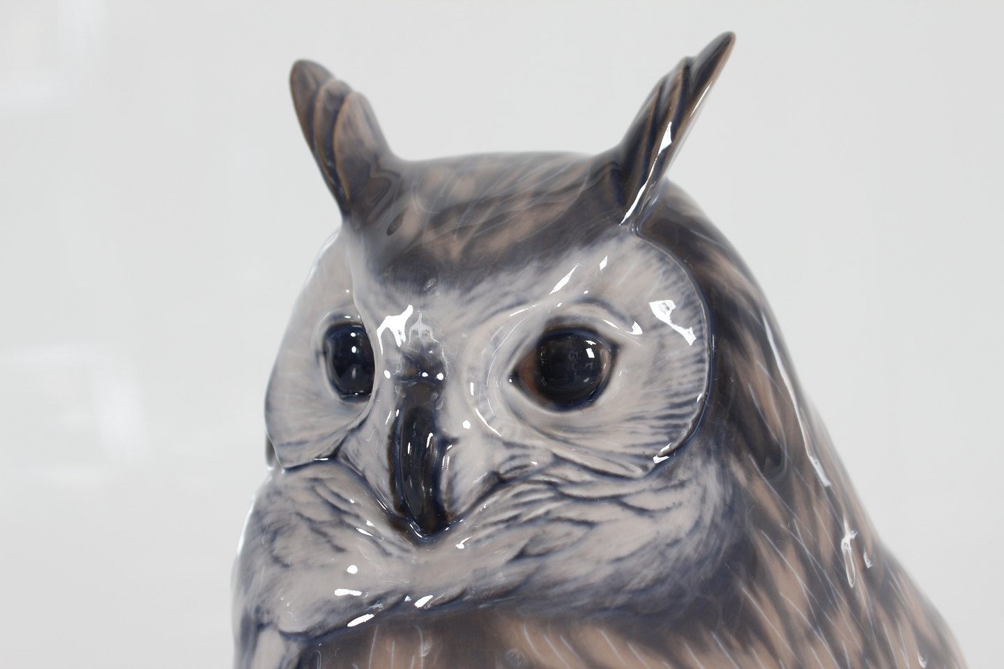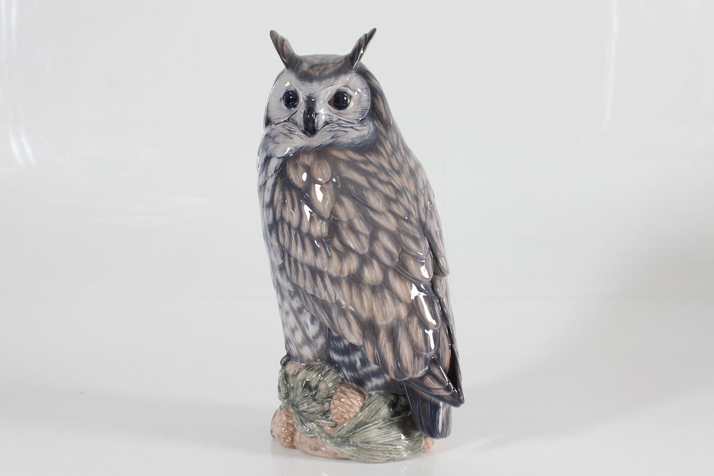 Royal Copenhagen Figurer Hornugle nr. 1331 formgjort af Peter Herold Med stempel fra perioden 1923-34 Højde 36 cm Længde 18 cm Bredde 14 cm Fin fejlfri 1. sortering
