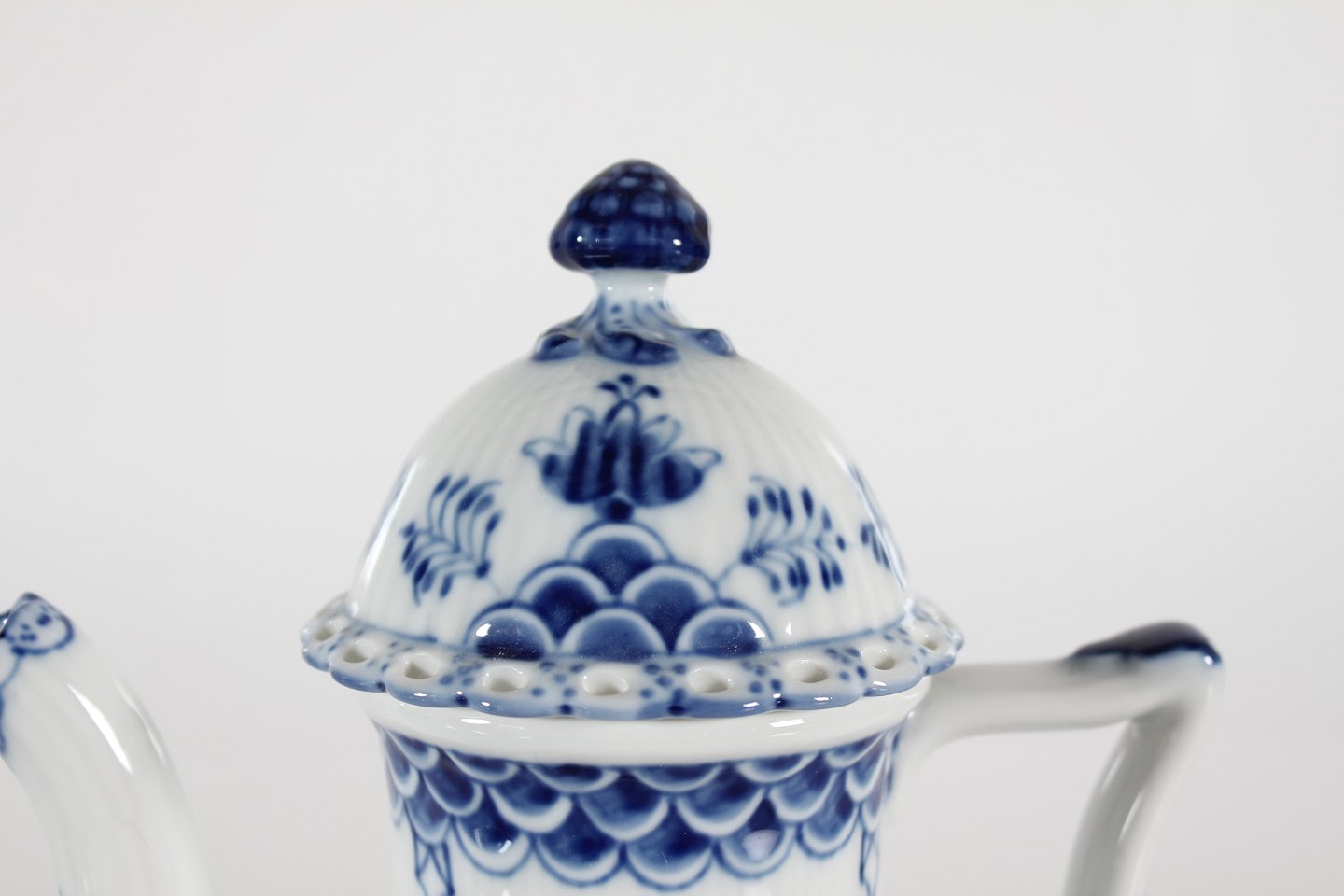 Royal Copenhagen Blue Fluted Full Lace Big Coffeepot no. 1/1202 With stamp from the period 1969-74 Height 29 cm Nice and perfect condition 1. quality
