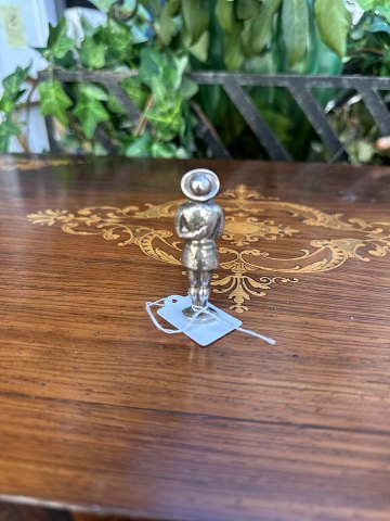 Vintage nålebeholder i sølv , formen en lille figur ( mand i folkedragt , fra 1800 tallet H 5 cm B 1,30 cm