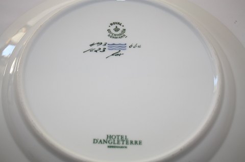 Frokosttallerken, Let saksisk blomst, kongelig porcelæn. Diameter 22 cm. med forskellige blomstermotiver, dek. nr. 493/1623, 1 sortering, stemlet hotel D`Angleterre