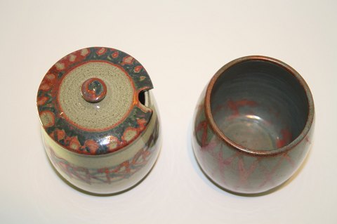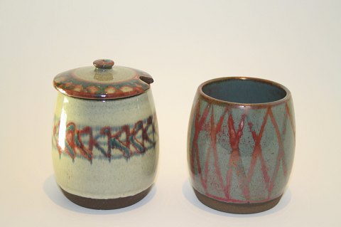 Krukke med låg højde 12 cm. Øvre diameter 7,5 cm. Pris: 175 kr.