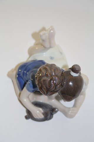 Lyngby, Porcelænsfabrikken Danmark. Figur med pige og dreng med skildpadde. Dyrevenner. Højde 12 cm. Nr. 4. Pris: SOLGT