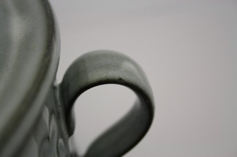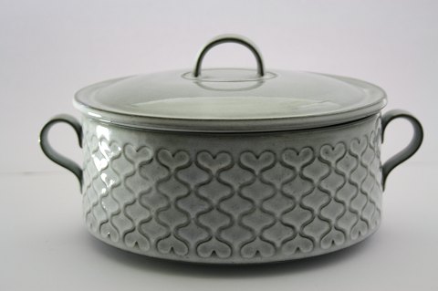 Nissen, Cordial, Gryde med ører og låg. Højde uden låg 7 cm. Diameter 18,5 cm. Lillebitte hak på øre og afslag på grydelåghank, se ekstra fotos. Pris: SOLGT