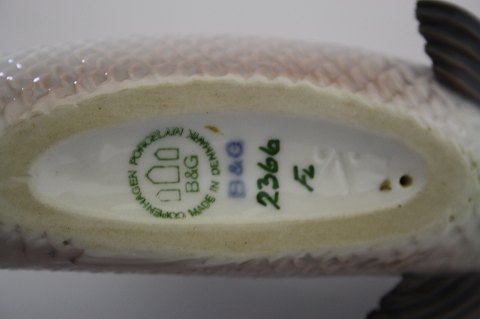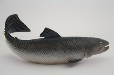 Bing & Grøndahl, Lakseørred. I. sortering. Dekorationsnr. 2366. Formgivet af Erling Vangedal. Længde 22 cm. solgt.