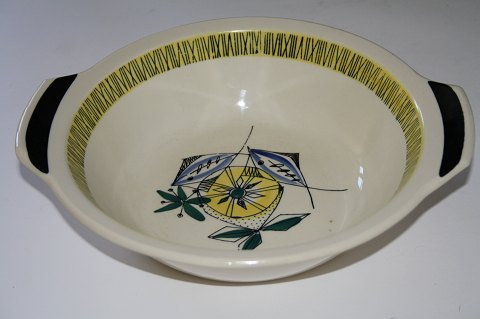 Flamingo ildfastserie fra Stavangerflint i Norge. Skål med ører. Nr.2011/2. Højde 5 cm. Omkreds med ører 24 cm. 2 brændingsfejl se foto 2. Pris: SOLGT