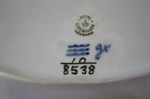 Blå blomst kantet, Royal Copenhagen, ovalt fad nr. 8538. 33,5 x 25 cm. I. sortering, der er dog en sort prik/brændingsfejl, se ekstra foto.