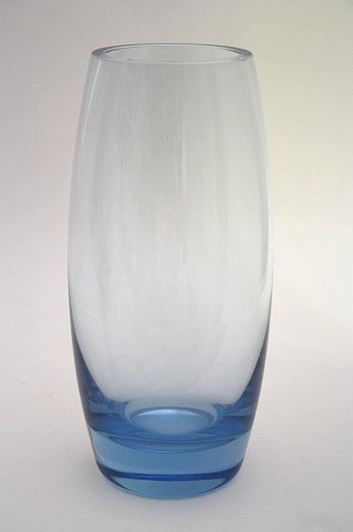 Akvablåserien, Hellas,Holmegaard, designet af Per Lütken, produceret i perioden 1954-1974. Høj vase. Højde 25 cm. Pris: SOLGT Mellem vase. Højde 16 cm. Pris: SOLGT Lav vase. Højde 11 cm. Pris: SOLGT