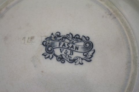 Villeroy og Boch, Fasan blåligt fajancestel med blå motiver af fasaner. Meget gammel stel. Der er mange fade, og forskellige dele til stellet, kan sælges samlet eller enkeltvis. Standen variere fra meget god til revnet og krakeleret med skår.