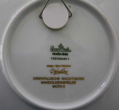 Orientalsk natmusik motiv nr 2: mandolin spilleren, Bjørn wiinblad platte, diameter 15 cm. fin stand. SOLGT
