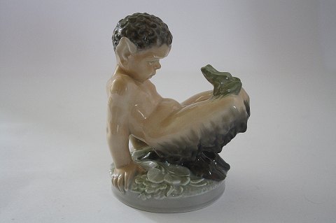 Faun med frø, dek. nr. 1713, højde 12 cm. 1. sortering pris 1900 kr. fin og hel stand, Royal Copenhagen. solgt