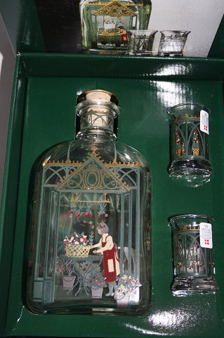 Holmegaard juleflaske med 2 dramglas 1999 med originalæske, ubrugt. solgt