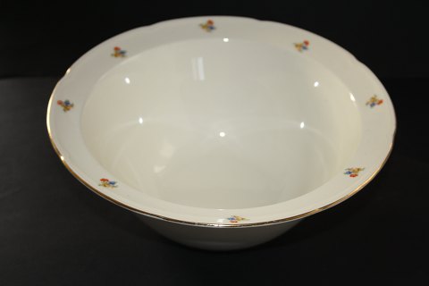 Aluminia fajance, Anna Sofie trykte støbuketter og guld. Designet af Nils Thorsson. Produceret i perioden fra 1940-1966. Suppeterrin med låg, hvor der er hul til opøserske. Højde 12 cm. Diameter 27 cm. Højde med låg 18 cm. God stand. Pris: SOLGT