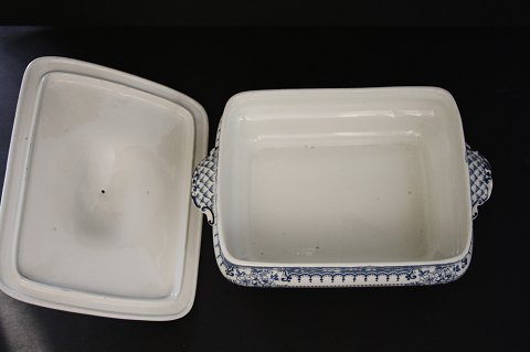 Mindre terrin med ører og låg i god stand. 24 x 17 cm. Pris: 325 kr.