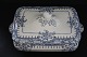 Stor Terin med ører, låg og underfad. Terrin højde med låg 19,5 cm. I låget er der hul med plads til suppeske. Højde uden låg 11 cm. Længde 30 cm. Bredde 19 cm. Der er misfarvet krakelering se ekstra foto. Underfad 32 x 25 cm. Der er et lille kantafslag på underfadet, samt misfarvet krakelering. Pris: 475 kr.