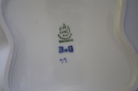 Bing & Grøndahl, Blå Nellike, Jubilæumsstellet. Produceret i 1915-1948. Plat de manage fad. Dek. nr. 33. II. sortering. 17,5 x 17,5 cm. Pris: