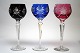 Bøhmisk Krystal. Smukke kulørte glas med slibninger på kumme og stilk. Højde 21 cm. Kan både sælges samlet og enkeltvis.