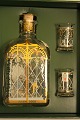 Juleflaske med 2 dramglas og originalæske årgang 2000 Holmegaard glasværk.