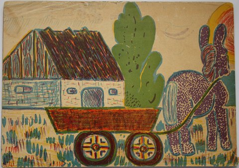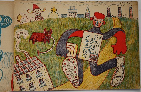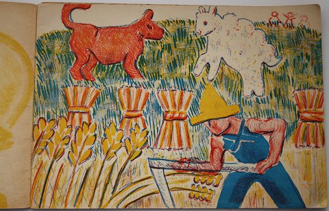 Bondegaarden fortalt af Ole Sarvig med originallitografier af Henry Heerup. Rosendahl & Jørgensens Forlag, uden år. (20 sider) Illustreret i farver. Hæftet. Tværformat længde 32,5 x 23 cm. Lidt brugsslid for- og bagside samt en løs side, men ellers i pæn stand.SOLGT