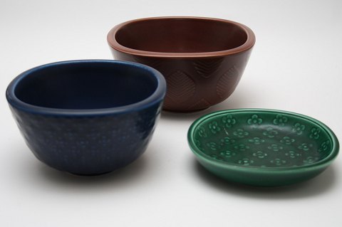 Lille fad i grøn mat glasur med blomstermønster. Dek.nr. 2636. Højde 3 cm. 14,5 x 14,5 cm. God stand. solgt
