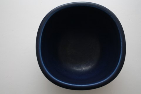 Skål i koboltblå mat glasur med blomstermønster. Dek. nr. 2643. Højde 8,5 cm. 15 x 15 cm. En anelse brugsslid indvendig i bunden, men ellers i god stand. solgt.