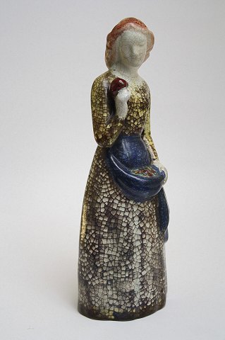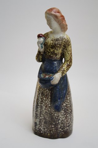Michael Andersen, Bornholm. Krakelé kvindefigur med blomster i forklæde designet af Marianne Stark. Dek.nr. 5255. Højde 24,5 cm. Pris solgt.