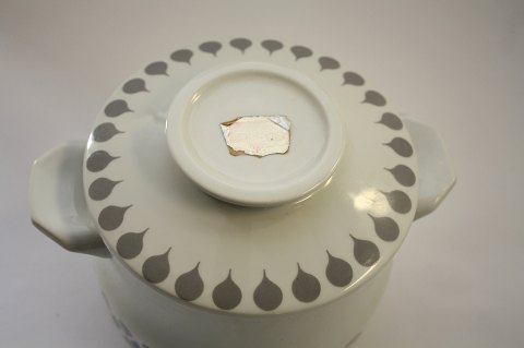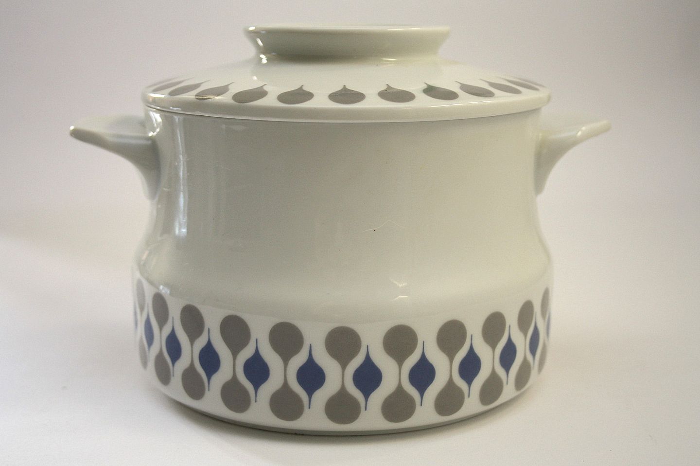 Lyngby porcelænsfabrik, Danild 66 gryde med ører og låg. Højde 12 cm. Diameter med ører 18 cm. Pris: SOLGT