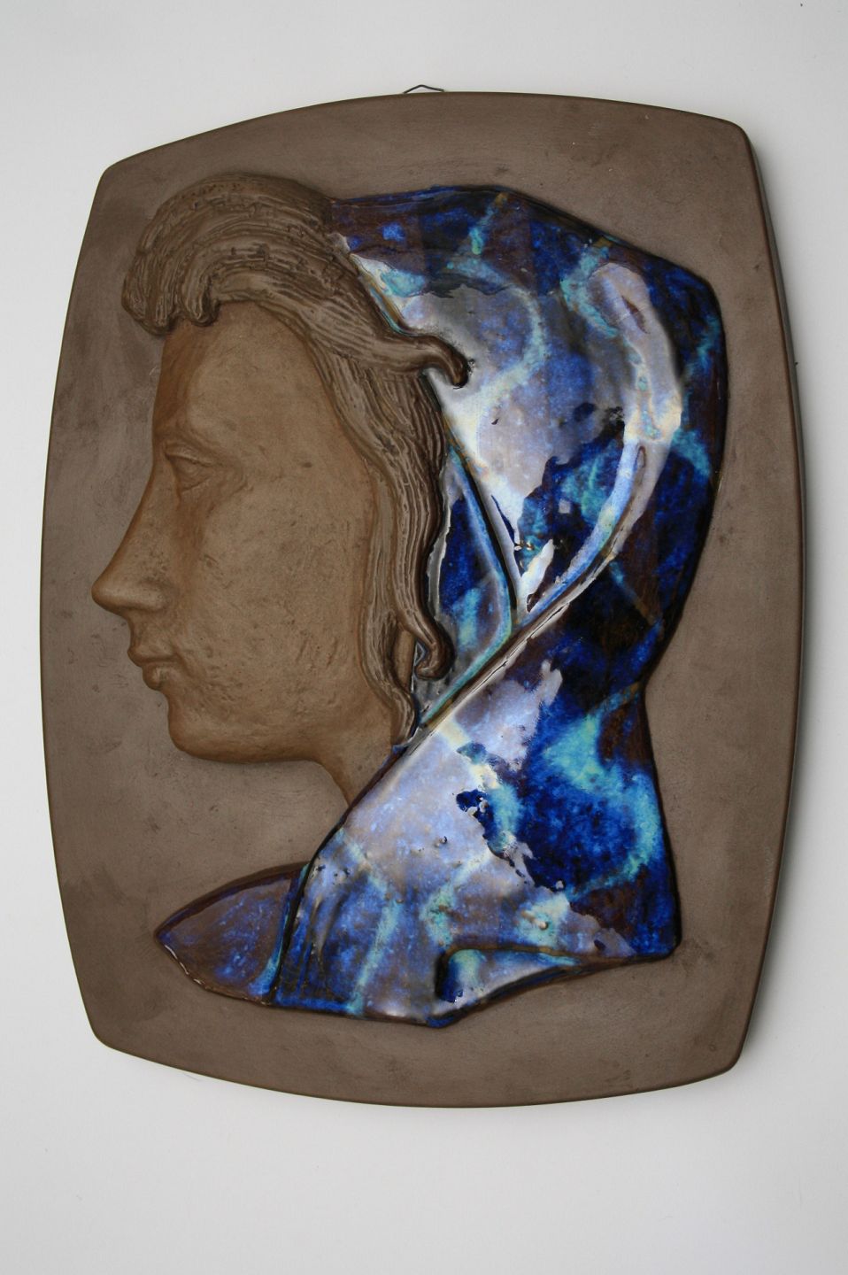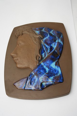 Kvinde med farvet tørklæde, Royal Copenhagen. mål 32x24,5 cm. designet af Johannes Hedegaard, Dek. nr. 160/2798 Pris 800 kr. hel og fin stand solgt
