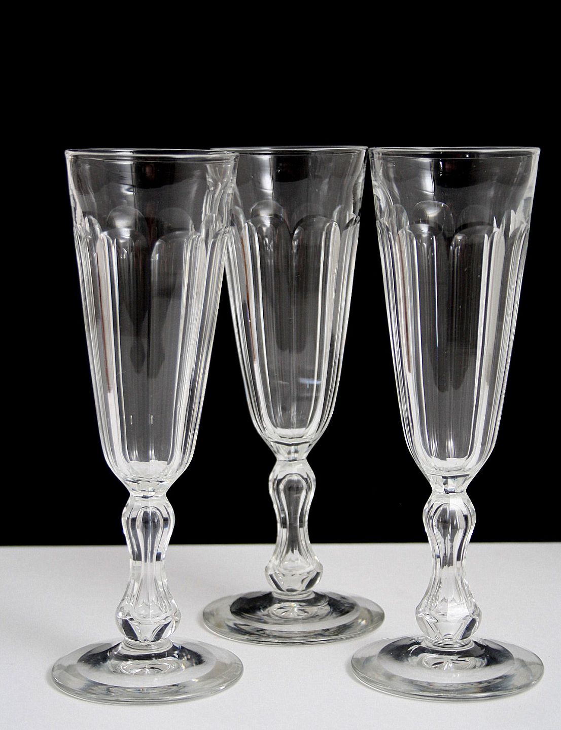 Gamle champagnefløjter, krystal. Højde 17,5 cm. Pris: SOLGT