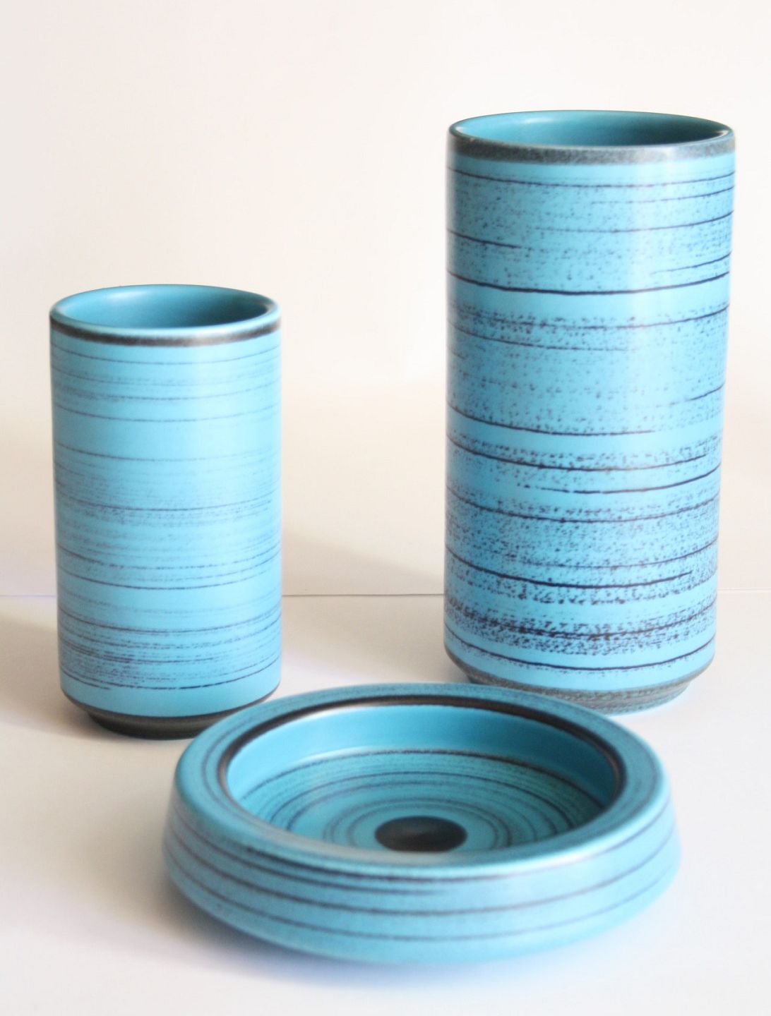 Knabstrup keramik i turkisblåt med sorte striber.